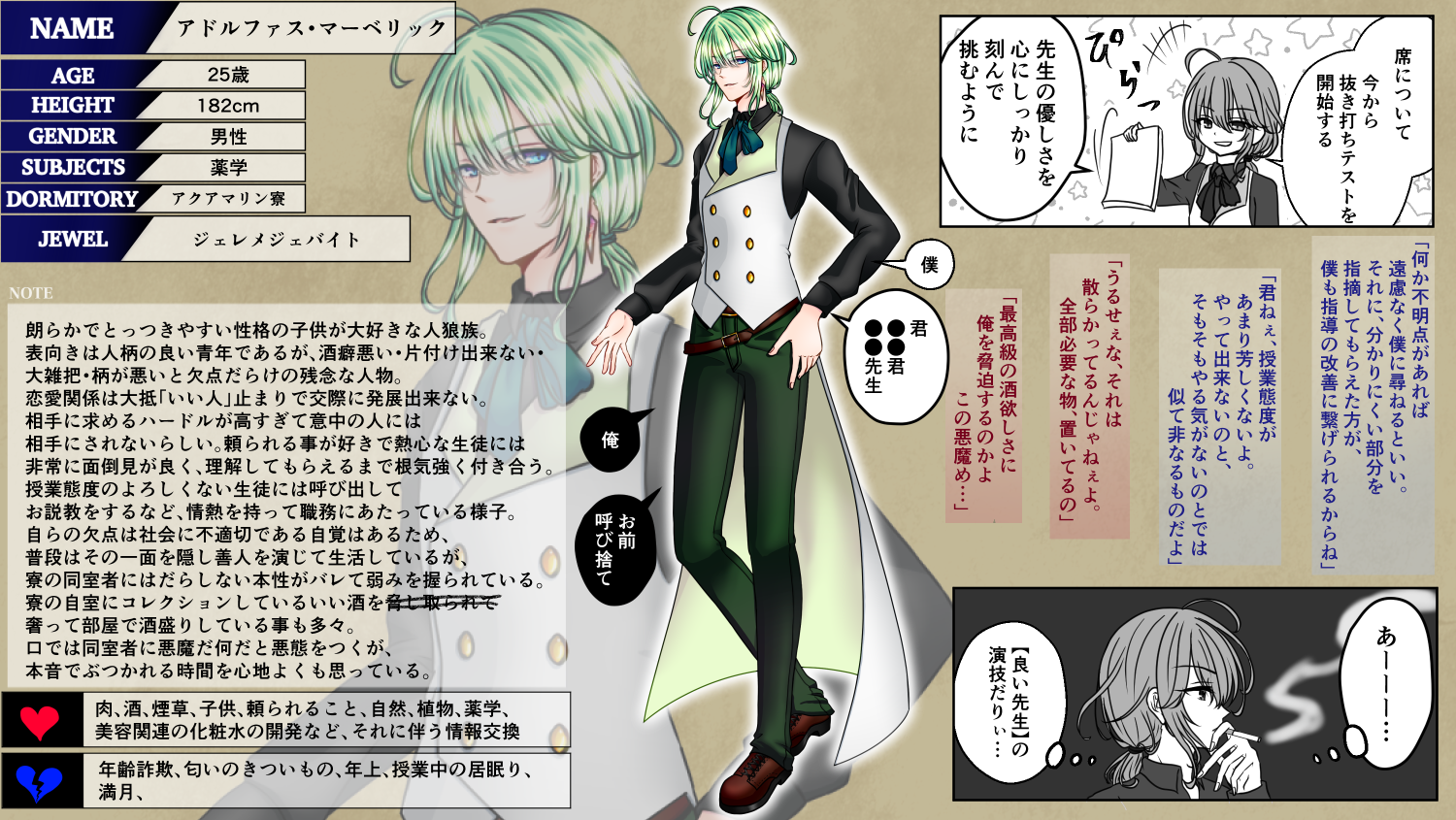 こちらは創作企画参加時に製作したもの。 一部、創作企画独自の世界観による要素が含まれております。 時系列はバラバラです。